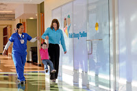 As we walked in through the front entrance, we were instructed to follow Tinkerbell's pixie dust which wove us through some neat displays including the themes of the rooms on each remodeled unit. We got to try our hands at the Milton Bradley game “Operation” through a minimally invasive surgery machine which is part of our Nicholson Center for Advanced Pediatric Surgery. We were also introduced to Max and Buddy the Bear, Florida Hospital’s 3-D animated tour guides. They will guide children through a video adventure that addresses theconcerns children may have about procedures.